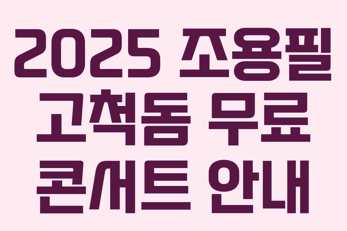 2025년 9월 6일, 조용필의 무료 콘서트가 서울 고척 스카이돔에서 개최됩니다. 이번 공연은 광복 80주년을 기념하는 특별한 자리로, KBS 2TV의 추석 특집 프로그램으로 방송될 예정입니다. 이 글에서는 콘서트 일정, 티켓 예매 방법, 당첨 확률을 높이는 팁을 자세히 안내합니다.