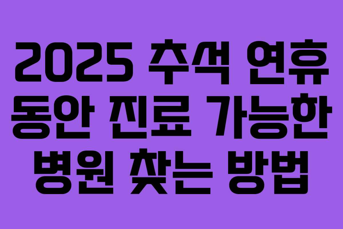 - 미리 확인하기: 연휴가 시작되기 전에 필요한 병원의 운영시간과 위치를 미리 확인해 두는 것이 좋습니다.