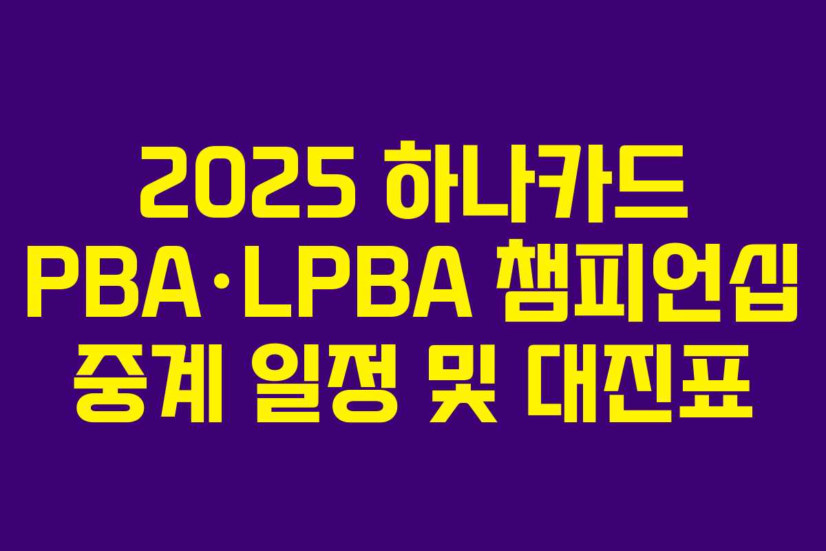 2025 하나카드 PBA·LPBA 챔피언십은 6월 29일부터 7월 7일까지 경기도 고양시 킨텍스 PBA 스타디움에서 열립니다. 이번 대회는 많은 기대를 모으고 있으며, 경기 일정 및 중계 정보, 주요 선수들에 대한 내용을 정리했습니다.