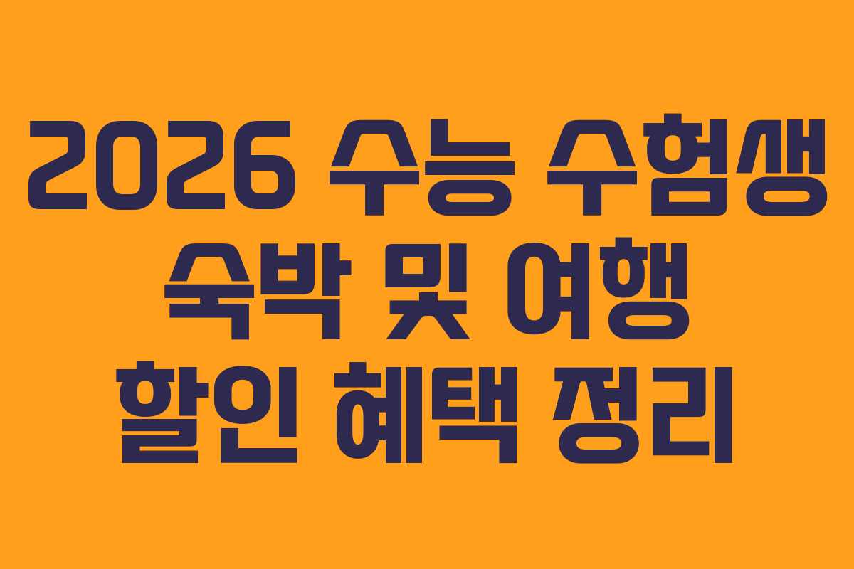 2026 수능을 마치고 여행을 계획하는 수험생들을 위해 다양한 숙박 및 여행 할인 혜택이 마련되었습니다. 수험표 인증만으로 최대 50% 할인 받을 수 있는 기회를 놓치지 마세요.