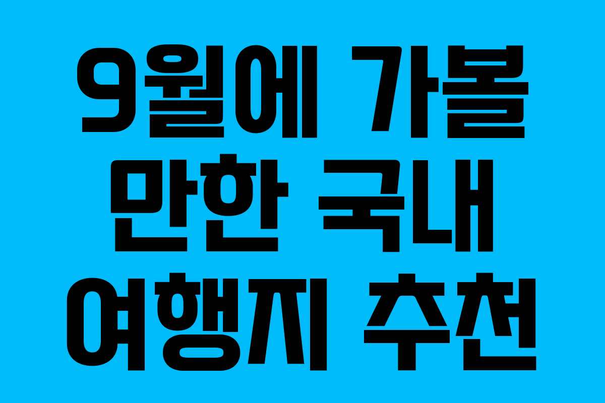 가을이 다가오는 9월, 무더위가 물러가고 시원한 바람이 불어오는 이 시기는 여행을 즐기기에 최적의 시기입니다. 이번 포스팅에서는 9월에 추천하는 국내 여행지를 테마별로 소개하겠습니다. 자연 속 힐링 여행부터 역사적인 명소, 아름다운 바다 여행까지 다양한 장소를 알아보세요.