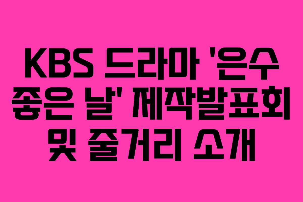 KBS 주말드라마 ‘은수 좋은 날’의 제작발표회가 2025년 9월 16일 서울 구로구 신도림동 더 세인트에서 성대하게 열렸습니다. 이 행사에는 주요 출연진과 제작진이 참석하여 드라마에 대한 높은 기대감을 나타냈습니다.