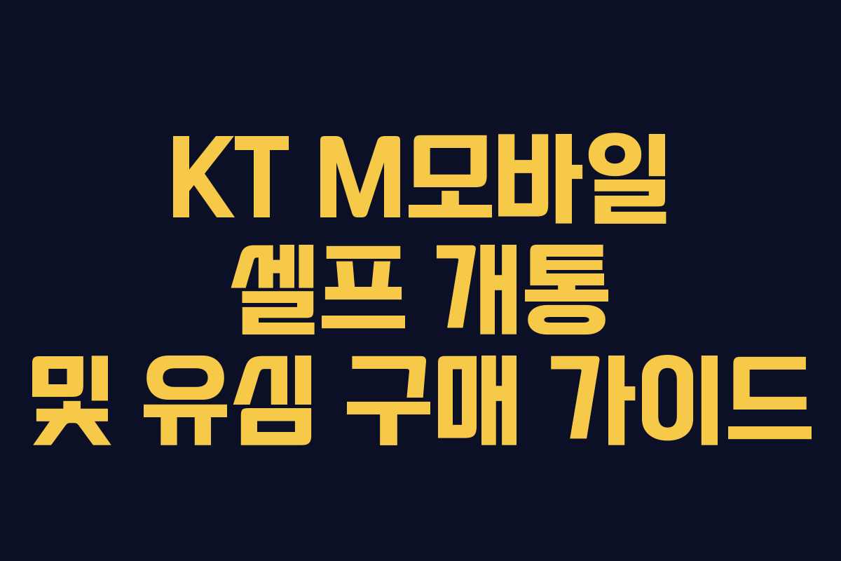 KT M모바일은 간편하게 셀프 개통을 할 수 있는 서비스를 제공하여, 복잡한 절차 없이 빠르게 알뜰 요금제로 전환할 수 있습니다. 이 글에서는 KT M모바일의 셀프 개통 과정과 유심 구매 방법을 안내합니다.