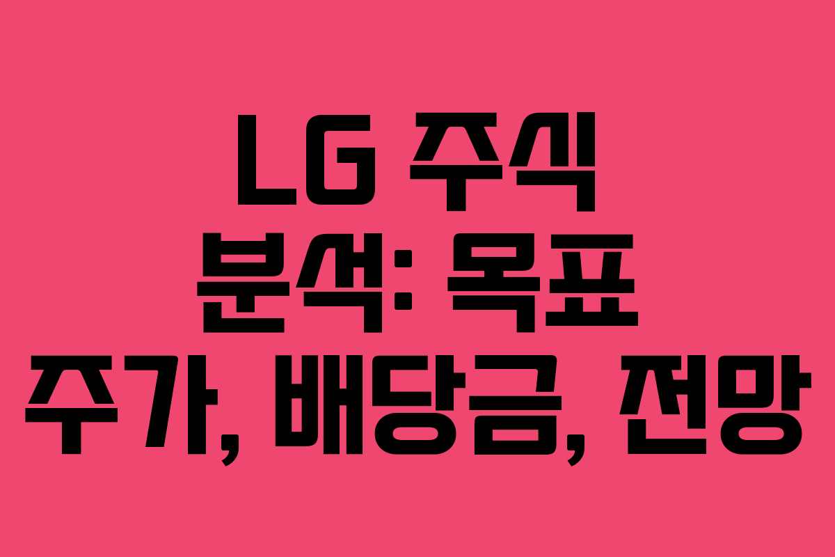 LG는 국내외에서 주목받는 기업으로, 다양한 사업을 통해 안정적인 수익을 창출하고 있습니다. 이번 글에서는 LG 주식의 목표 주가, 배당금 수익률, 기업 분석 등을 다루어 보겠습니다.
