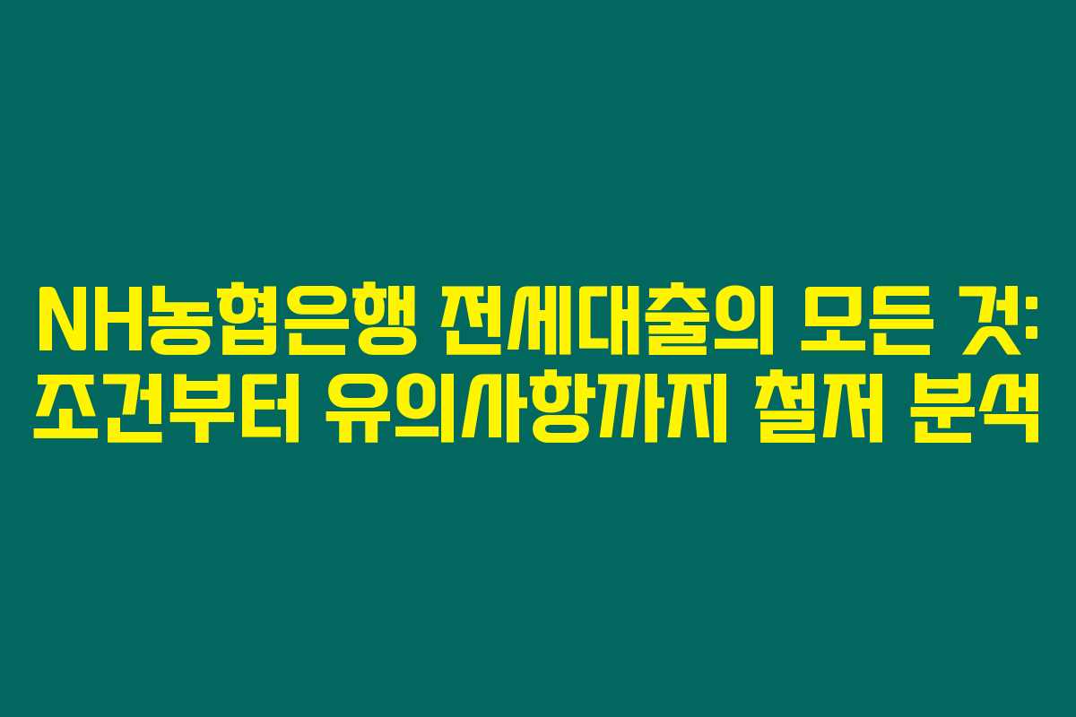 NH농협은행 전세대출의 모든 것: 조건부터 유의사항까지 철저 분석