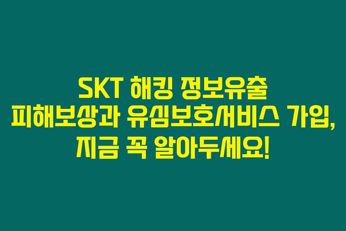 유심보호서비스는 SKT 해킹 정보유출 피해보상을 위한 가장 효율적인 방법으로 자리잡고 있습니다. 이 서비스를 가입하면 불법 유심 복제를 차단하고, 해킹으로 인한 피해 발생 시 SKT에서 전액 보상받을 수 있습니다. 가입 방법도 간단하여, 누구나 손쉽게 이용할 수 있어요.