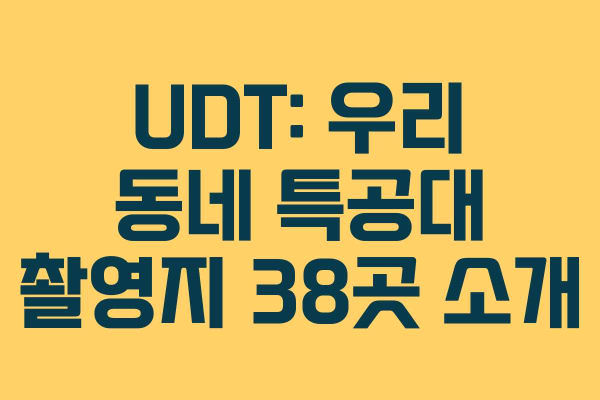 드라마 “UDT: 우리 동네 특공대”는 다양한 촬영지에서 촬영되어 시청자들에게 더욱 생생한 느낌을 주고 있습니다. 이번 포스팅에서는 이 드라마의 촬영지 38곳을 소개하여 드라마의 매력을 한층 더 느낄 수 있도록 하겠습니다.